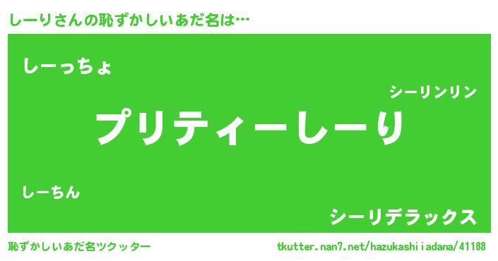 | 意味不明あだ名 | 『住所不定無職しーり(77歳)』『自称しーり』 |