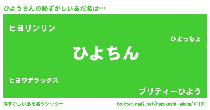 | ヘコむあだ名 | 『ひよう(笑)』『ひよお』『なまこ酢』 |