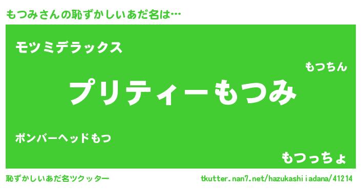| 意味不明あだ名 | 『ペロリンもつみ』『自称もつみ』 |