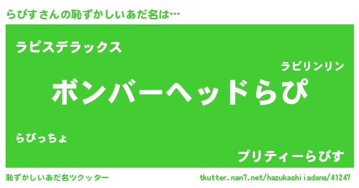 | ヘコむあだ名 | 『らぴもー』『らぴお』『つくし』 |
