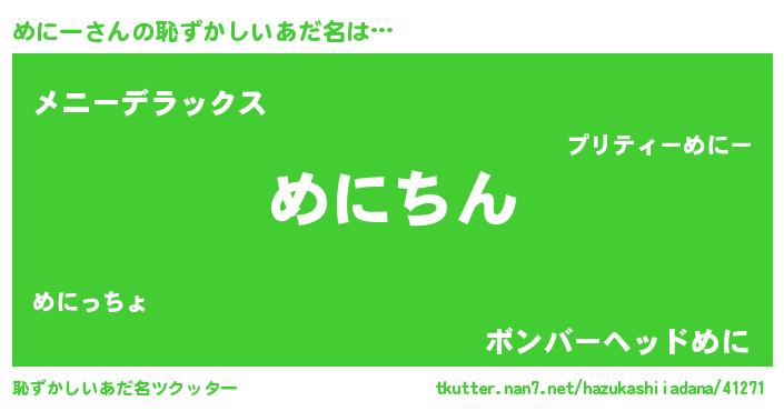 | 意味不明あだ名 | 『永久保存めにー』『自称めにー』 |