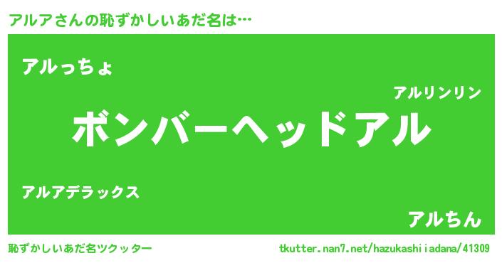 | ヒーロー風カッコイイあだ名 | 『慈愛の使者アルア』『ネオアルア』 |