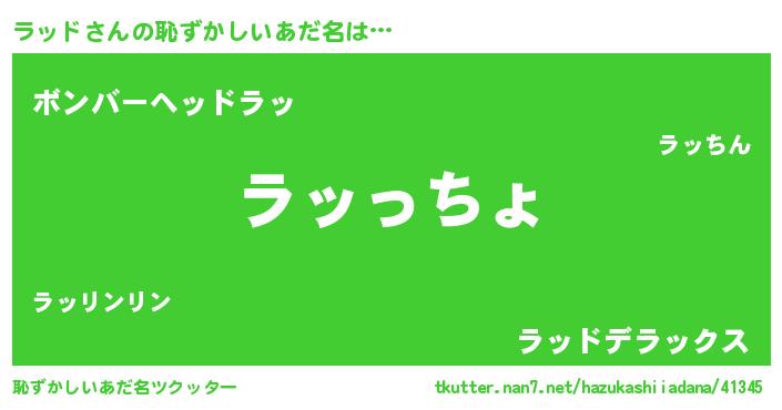| ヒーロー風カッコイイあだ名 | 『ウルトララッドマン』『ネオラッド』 |