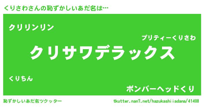 | 意味不明あだ名 | 『自称くりさわ』『なめこ科くりさわ属』 |