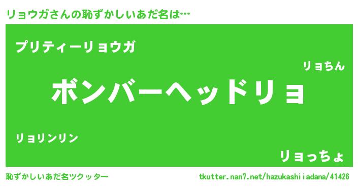 | ヒーロー風カッコイイあだ名 | 『慈愛の使者リョウガ』『仮面リョダー』 |