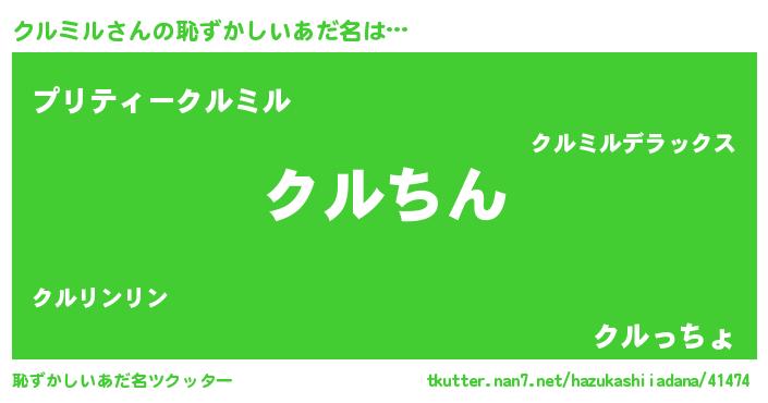 | ヒーロー風カッコイイあだ名 | 『ネオクルミル』『スーパークルミル』 |