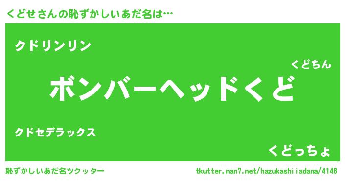 | ヒーロー風カッコイイあだ名 | 『正義の使者くどせ』『仮面クドダー』 |