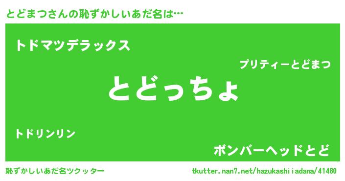 | ファンタジー風あだ名 | 『エターナルトドマツー』『ゼトドトゥ』 |