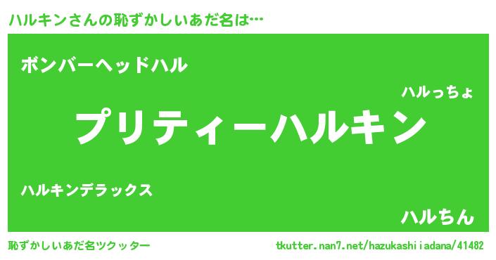 | 意味不明あだ名 | 『ペロリンハルキン』『永久保存ハルキン』 |