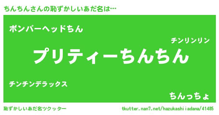 | 男性向けラノベタイトル風あだ名 | 『ちんちんの憂鬱』『チンチンスレイヤー』 |