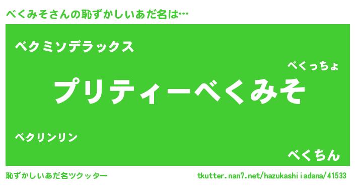 | 意味不明あだ名 | 『ペロリンべくみそ』『自称べくみそ』 |
