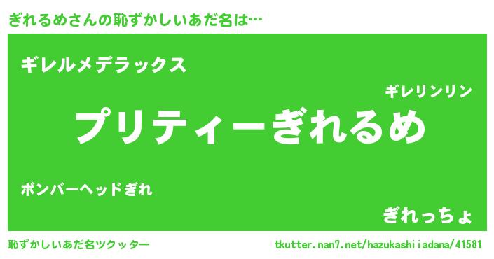 | 意味不明あだ名 | 『住所不定無職ぎれるめ(4歳)』 |