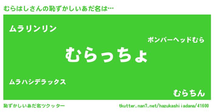 | ポケモン風あだ名 | 『ムラハダネ』『ヒムラハシ』 |