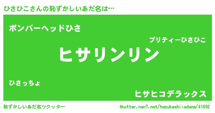 | 男性向けラノベタイトル風あだ名 | 『ダンジョンにひさひこを求めるのは間違っているだろうか』 |