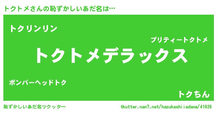 | 意味不明あだ名 | 『住所不定無職トクトメ(71歳)』 |