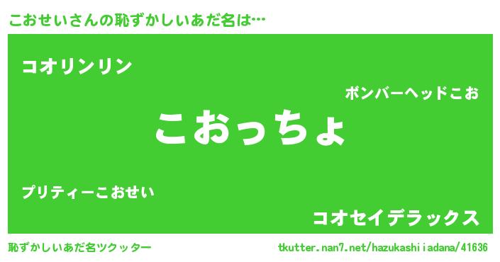 | 意味不明あだ名 | 『こおせいフォーエバー』『自称こおせい』 |