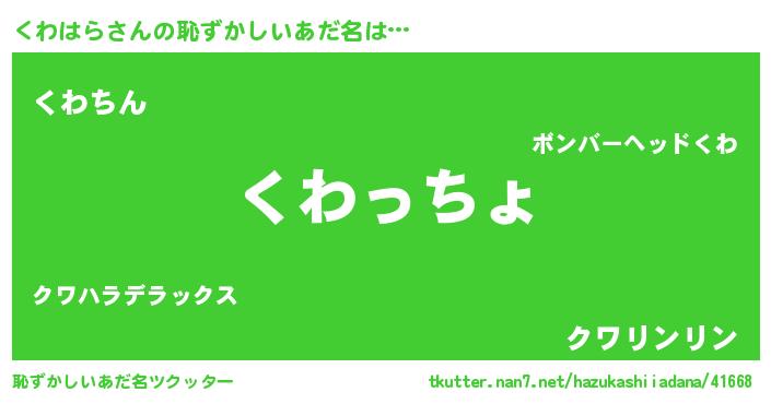 | ヒーロー風カッコイイあだ名 | 『ウルトラくわはらマン』『ネオクワハラ』 |