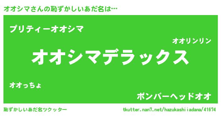 | 男性向けラノベタイトル風あだ名 | 『転生したらオオシマだった件』 |