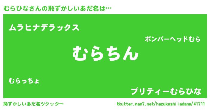 | ヘコむあだ名 | 『むらひな(震え声)』『むらにー』 |