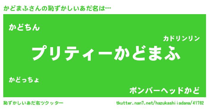 | ヘコむあだ名 | 『かどもー』『かどまふ(笑)』『牛乳』 |