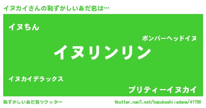 | ポケモン風あだ名 | 『ヒイヌカイ』『イヌゴンZ』 |