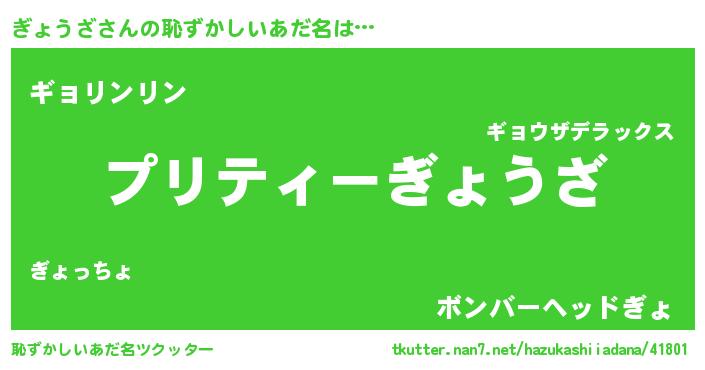 | 男性向けラノベタイトル風あだ名 | 『ぎょうざの憂鬱』 |