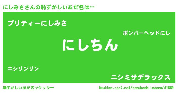 | ヘコむあだ名 | 『にしみさ(笑)』『にしにゅー』 |