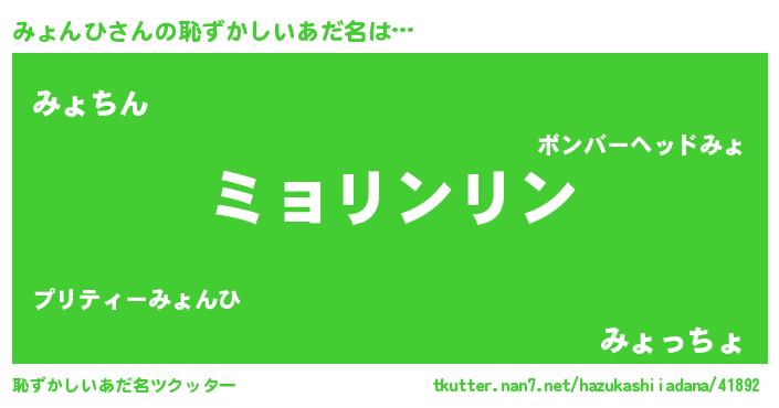 | 欧米人風あだ名 | 『ウサインみょんひ』『ダニエルみょんひ』 |
