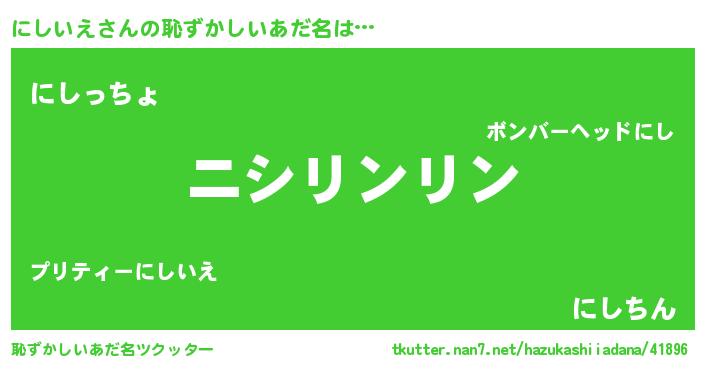 | ポケモン風あだ名 | 『ニーシイ』『ヒニシイエ』 |