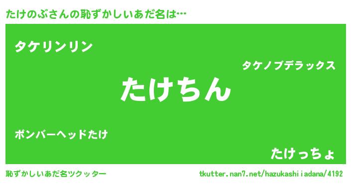 | ヘコむあだ名 | 『たけのぶ(爆)』『たけっぺ』 |