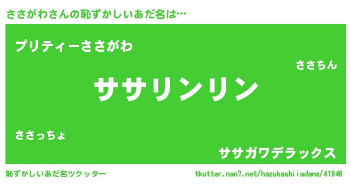| 意味不明あだ名 | 『とにかく怪しいささがわ』 |