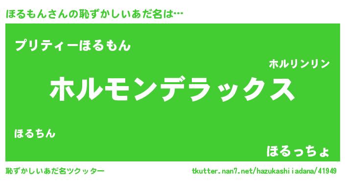 | 女子向けラノベタイトル風あだ名 | 『ほるもんなんてお断りですっ。』 |