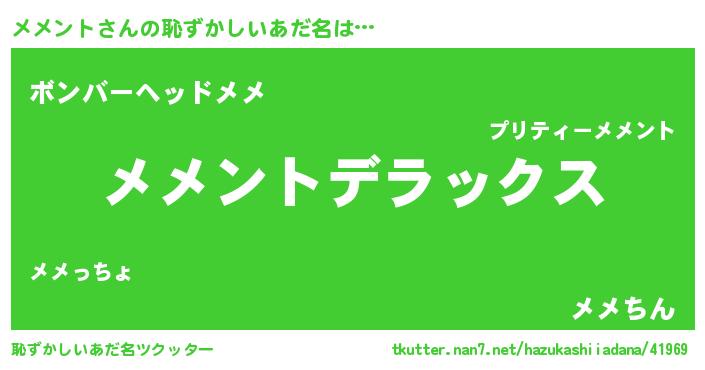 | 意味不明あだ名 | 『自称メメント』『永久保存メメント』 |