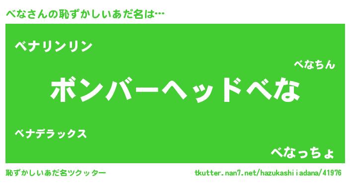 | 意味不明あだ名 | 『住所不定無職べな(79歳)』『永久保存べな』 |