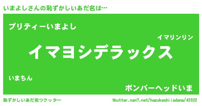 | ヘコむあだ名 | 『いまもー』『いまっ子』『なまこ酢』 |