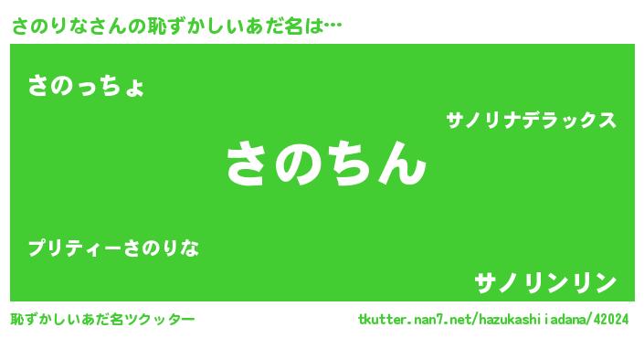 | 男性向けラノベタイトル風あだ名 | 『さのりなという概念が存在しない退屈な世界 』 |