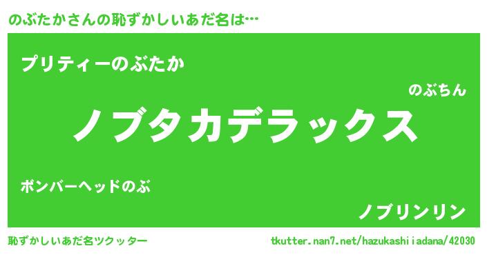 | ヒーロー風カッコイイあだ名 | 『最強戦士ノブタカ』『仮面ノブダー』 |