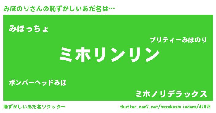 | 意味不明あだ名 | 『とにかく怪しいみほのり』 |