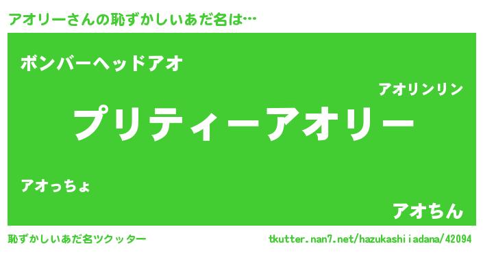 | ヒーロー風カッコイイあだ名 | 『仮面アオダー』『スーパーアオリー』 |