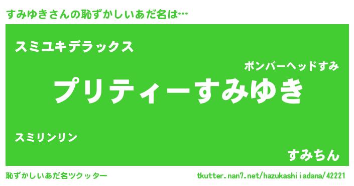 | ヘコむあだ名 | 『すみっふぃ~』『すみゆき(苦笑)』 |