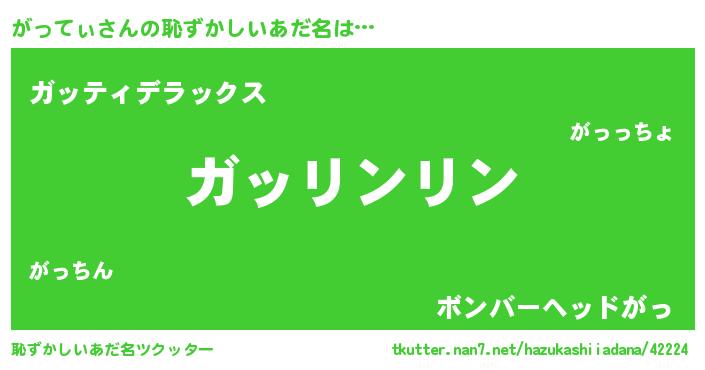 | 男性向けラノベタイトル風あだ名 | 『緋弾のガッティ』『魔弾の王とがってぃ』 |