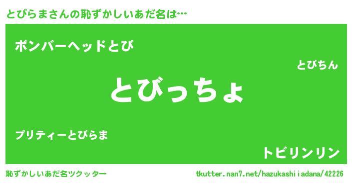 | ヘコむあだ名 | 『豆乳』『とびっちょ』『とびにゅー』 |