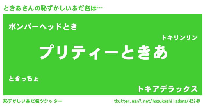 | 意味不明あだ名 | 『住所不定無職ときあ(53歳)』『自称ときあ』 |