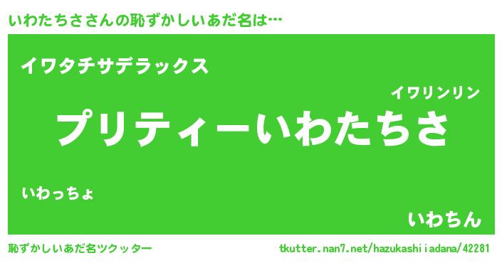 | ヘコむあだ名 | 『いわふぇ~』『いわたちさ(笑)』 |