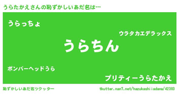 | ヘコむあだ名 | 『うらたかえ(笑)』『なまこ酢』 |