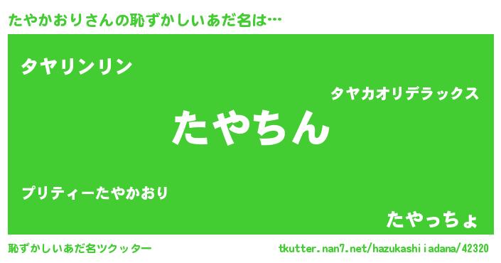 | 意味不明あだ名 | 『永久保存たやかおり』 |