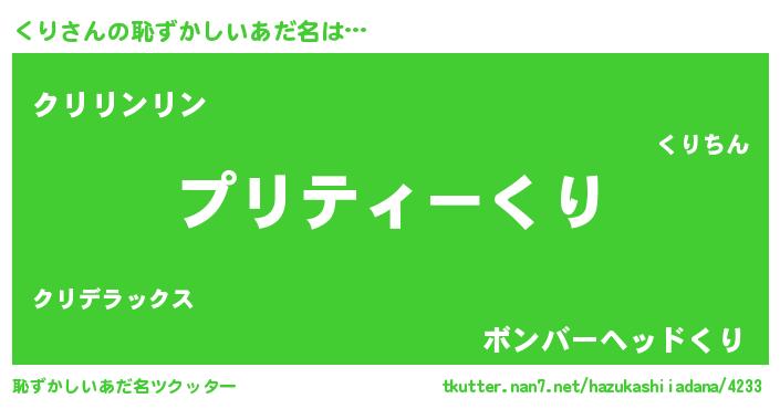 | ヘコむあだ名 | 『くりにー』『くりを』『くり(笑)』 |