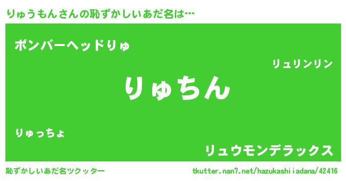 | 意味不明あだ名 | 『永久保存りゅうもん』『自称りゅうもん』 |