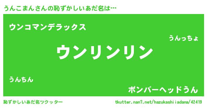 | ヒーロー風カッコイイあだ名 | 『黄金騎士ウン』『最強戦士ウンコマン』 |