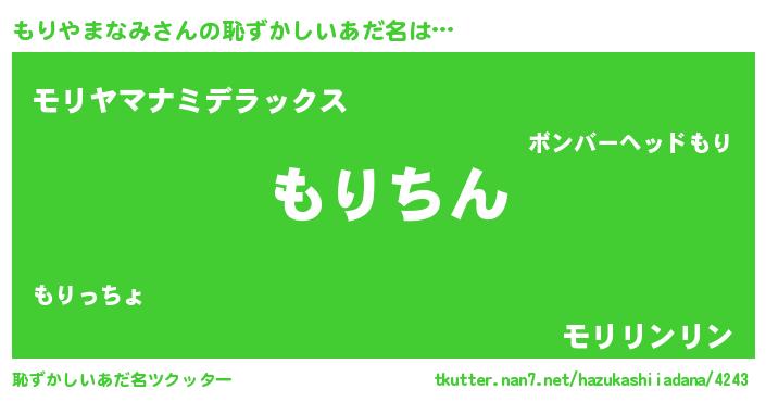 ヘコむあだ名 | 『もりやまなみ(苦笑)』『もり太郎』 |